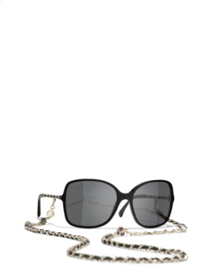 Chanel Rectangular Sunglasses Ch5447 Black Grey At John Lewis Partners